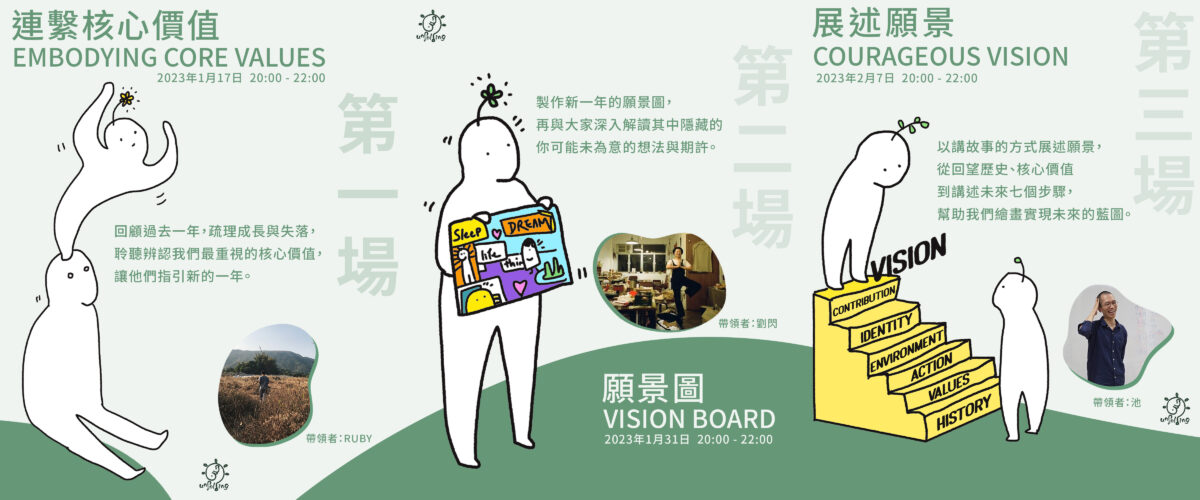 Envisioning the future工作坊系列是我們送給大家的一份新年禮物。當中有我們投入的心思與時間,盼大家享受學習。我們亦邀請你按自己的意願和能力回饋,支持我們的日常營運。