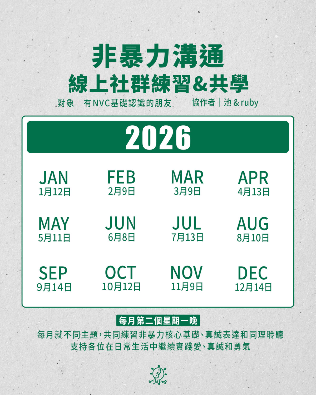 非暴力溝通 線上社群練習&共學 2026年時間表